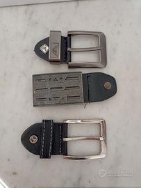 Vendo cintura marrone in vera pelle da uomo,con un design intrecciato,fibbia in metallo ,taglia 60 lunghezza totale 137 cm.,larghezza 3,5 cm. usata in buone condizioni e 3 fibbie per cintura usate,2 fibbie Wampum una marrone e una nera e una fibbia Lumberjack.