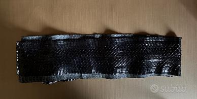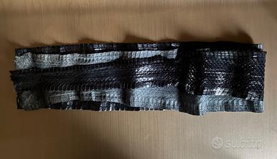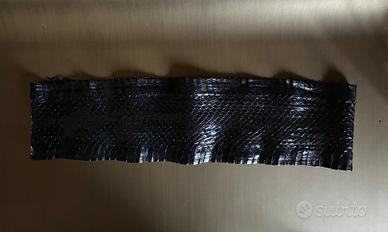 Cintura in pelle nera pitonata da annodare. Lunghezza 195 cm; altezza massima 11 cm.