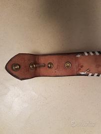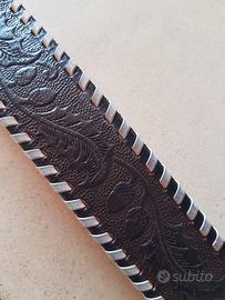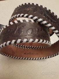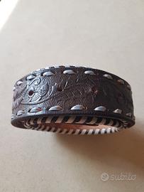 Cintura in pelle stile western con attacco fibbia intercambiabile a disegni floreali, simile ai modelli vintage prodotti da brand come El Charro.
