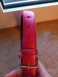Cintura in simil pelle color fucsia con fibbia dorata, misura 40, lunghezza cm.80. Nuova.