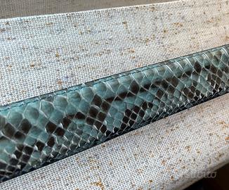 Vendo cintura in vero pitone sulla tonalità del verde In ottimo stato Lunghezza cm 110 fibbia compresa Altezza cm 3,5