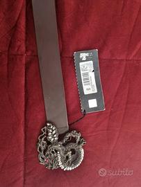 Cintura donna Just Cavalli, pelle marrone, fibbia con drago con cristalli, misura 80 cm