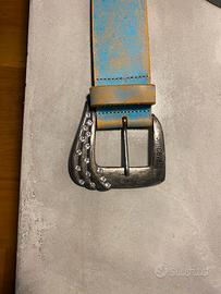 Vendo cintura originale Just Cavalli, mai usata, in pelle color azzurro pastello. Fibbia in acciaio decorata con brillanti, dal design elegante e distintivo. Perfetta per chi cerca un accessorio di classe e di qualità firmata.