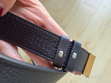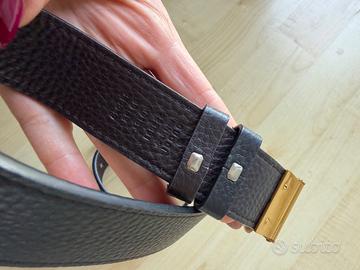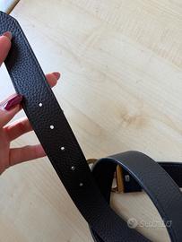 Cintura nera in vera pelle. Comprata a Shangai. E in ottime condizioni, usata pochissimo. Ho aggiunto personalmente un piccolo foro per adattarla meglio alla mia vita: è discreto e si nota davvero poco. Vedi foto. Materiale resistente e di qualità, fibbia solida e pesante. Invio anche con dustbag.