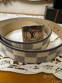 Cintura Louis Vuitton fantasia a scacchi, bianca e azzurra. Ideale per look estivi ed eleganti