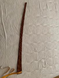 Cintura in similpelle color marrone caldo, con fascia frontale ampia e laccetti da annodare.