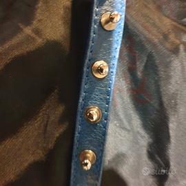 cintura di pelle con borchie azzurra, L 95cm H 1