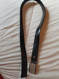 cintura nera con chiusura stras colore argentata. cintura lunga cm 107, larga cm 3,5. isate poche volte