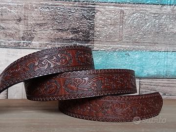 Cintura nuova mai indossata, un'ottima idea regalo per tutti. Nel mio profilo trovi tante belle cinture in stili diversi, passa a dare un'occhiata! Misura cintura: cm 115x4 Dimensioni Fibbia: cm 8x6 Materiale: Pelle Vegan Premium con texture in rilievo Dettagli: Fibbia in metallo con lavorazione Versatilità: Modello unisex (Uomo/Donna). Aggiungi un tocco di carattere al tuo outfit con questa cintura versatile, perfetta indossata con jeans denim, stivali, sneakers e tshirt.. Spedizione celere e tracciabile tramite Tuttosubito Imballaggio accurato con busta pluriball per proteggere il tuo acquisto Accetto solo pagamenti sicuri tramite Tuttosubito Guarda le mie inserzioni, trovi un sacco di cinture per diversi outfit e stili, come ad esempio: rodeo, punk, boho festival chic, western, cowboy, cowgirl, country, etnico, vintage buckle, floral embossed, native american style, studded, gothic, cyberpunk, heavy metal, biker, punk, streetwear, dark, emo...