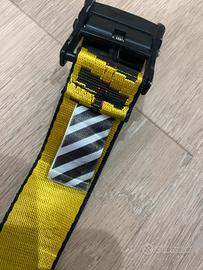 Cintura Off-White UNISEX e ORIGINALE gialla con scritte nere ricamate, regolabile. Mai utilizzata e nuova, compresa di busta originale, in perfette condizioni. Spedizione veloce.