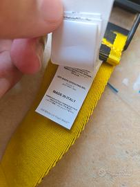 Vendo cintura off-white industrial belt modello mini quote "belt" originale, unisex in condizioni eccellenti, usata solo 4-5 volte e senza alcun difetto lunghezza circa 2 metri, larghezza 3.5 cm colore giallo incluso di sacchetto ed etichette originali nelle foto trovate il codice QR di certilogo che dimostra l'originalità del prodotto, acquistato su Yoox un anno e mezzo fa vendo per inutilizzo
