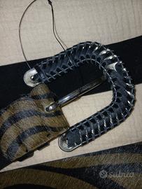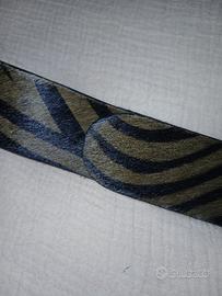 Cintura donna nuova senza cartellino, in vera pelle, in cavallino stampa zebra fodera camoscio. H cm 3,5 lunga fusto totale cm 110, + fibbia in metallo , infilata con pelle nera. Colore verde militare e nera.