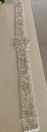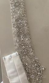 CINTURA SPOSA o PER CERIMONIA , RICAMATA CON CRISTALLI E STRASS ARGENTO.