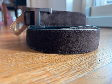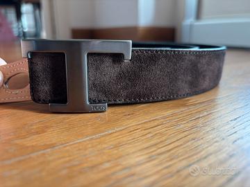 Cintura originale Tod’s reversibile in pelle scamosciata marrone e nera, con iconica fibbia T Timeless in metallo personalizzato. Lati in colori differenti. Misura 95. Prezzo non trattabile!