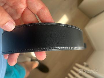 Nuova, mai indossata. Colore marrone e nera, reversibile con lato nero di pelle liscia e lato chocolate di pelle martellata, fibbia Royal. Taglia 95.