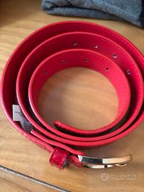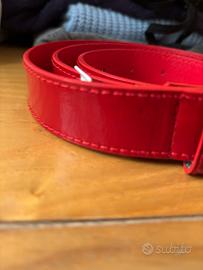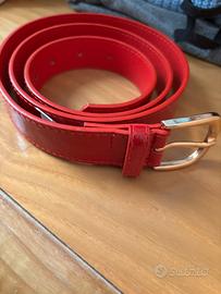 Cintura lucida rosso fuoco con fibbia dorata.