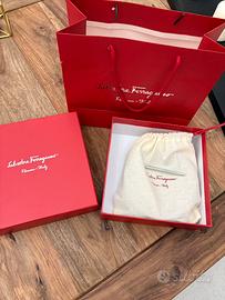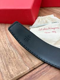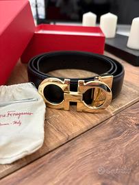 Vendo splendida cintura Salvatore Ferragamo originale, elegante e senza tempo. • Colore: nero • Fibbia iconica Gancini in metallo dorato • Condizioni: pari al nuovo, usata pochissimo • Completa di scatola originale, dust bag e accessori (come da foto) Perfetta sia per outfit eleganti che casual, è un accessorio di lusso che non passa mai di moda. Ideale anche come regalo