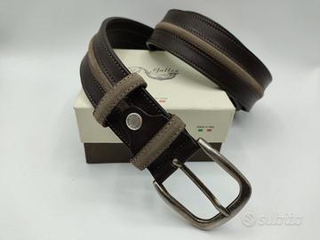 Cintura Sportiva uomo in pelle pieno fiore con inserto centrale in camoscio. Cintura da 4 centimetri realizzata con pellami in pieno fiore e accessori italiani di alta qualità. Prodotto lavorato a mano da maestri artigianali che ne curano i dettagli e le rifiniture. Cintura adatta all'abbigliamento sportivo e al tempo libero. Siamo un azienda artigianale da oltre 30 anni di attività. Al momento dell'ordine indicare la taglia preferita tra quelle elencate.