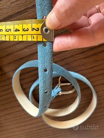 ✅ Cintura Stefanel azzurra in pelle scamosciata. ✅ Mai usata. ✅ Taglia S ✅ Lunghezza 92 cm senza fibbia ✅ Larghezza 1,5 cm ✅ Vera pelle ✅ Made in Italy