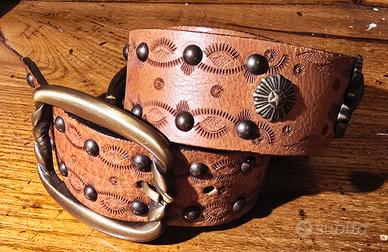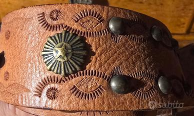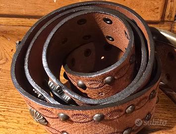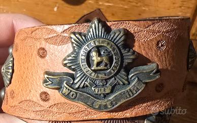 Vendo per inutilizzo cintura Worcestershire Regiment in pelle e cuoio di color marrone con emblemi in ferro da uomo , uno degli emblemi la scritta è poco leggibile. misura 90x105
