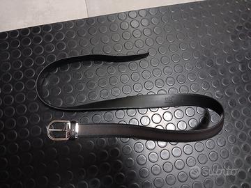 cintura uomo montblanc in pelle nera con fibbia argento nuova mai usata originale
