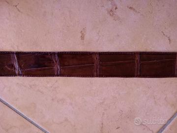 LEGGERE CON MOLTA ATTENZIONE ENEL DUBBIO CHIEDETE PRIMA DI ACQUISTARE PERCHE' NON SI ACCETTANO CONTESTAZIONI O RESI. Metto in vendita questa cintura da uomo che mi è stata regalata, molto tempo fa, da una persona che è stata in vacanza in Madagascar. Non ricordo se quando me la regalò disse che era pelle di coccodrillo o serpente per cui non posso garantire ne' l'uno ne' l'altro. La cintura è chiaramente di fattura artigianale del luogo e non ha marchi o timbri che attestino o dichiarino il tipo pelle. Non è stata mai usata. Ha una lunghezza di 120 cm fibbia compresa e un'altezza di circa 38 mm. Viene venduta con la formula del “visto e piaciuto”. Il prezzo non è trattabile.