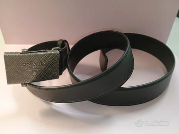 cintura soffiano con fibbia in metallo con logo PRADA inciso, chiusura a scatto automatica