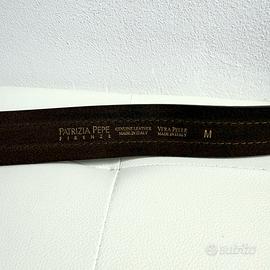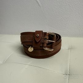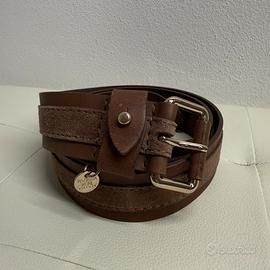 Cintura in vera pelle, dettagli in camoscio, tinta cammello in condizioni eccellenti Fibbia dorata Taglia M Lunghezza 105 cm