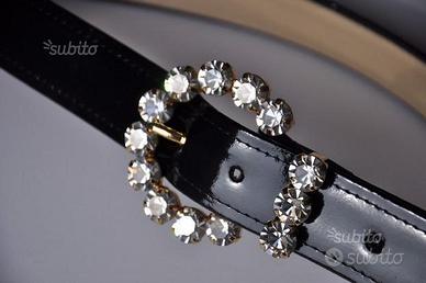 Elegante cintura in pelle di vernice nera marca "I Santi" made in Italy, con fibbia luccicante composta di strass. Vendo per inutilizzo.