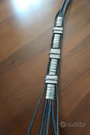 cintura vintage tribale in cuoio marrone e metallo donna con chiusura gancio regolabile con 5 anelli fino a lunghezza di circa 91 cm