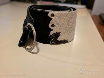OCCASIONE UNICA - PEZZO UNICO VINTAGE Vendo cintura artigianale donna in vera pelle e cavallino con finiture in metallo. Lunghezza 100cm Larghezza max 12 cm! Stileforte e deciso, perfetta per dare carattere a ogni outfit. Usata pochissimo, tenuta con cura maniacale. Il pelo è intatto, la pelle è morbida e solida. Praticamente come nuova. Prodotti simili con vera pelle e cavallino superano facilmente i 100-150€ nei negozi vintage o online. La propongo solo per oggi a 41€ Dopo torna in collezione privata. Non aspettare.