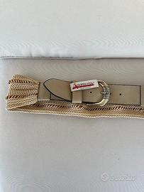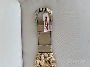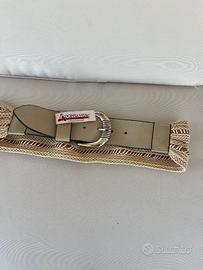 Cintura vintage femminile in cuoio e corda beige Doppia Vita h 8 lung. 95 cm. Lunghezza fino al foro centrale 85 cm. La cintura è leggermente elastica.