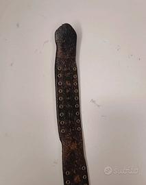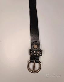 Cintura Yoschi in 100% pelle, con borchie, lunghezza 115 cm e larghezza 2 cm. Condizioni discrete, perfetta per completare look casual o rock. Spedizione o ritiro a mano disponibile