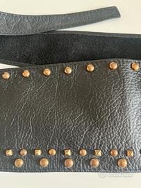 La parte centrale a bustino misura centimetri 49 × 11 di altezza misurato nella parte centrale in pelle di nappa con borchie in ottone molto particolare e versatile prodotto di alta qualità firmata pinko come visibile in una delle foto, mai indossata le due parti laterali che vanno incrociare misurano centimetri 74 ciascuna di lunghezza