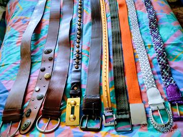 Assortimento di Dieci cinture, (da donna e alcune unisex) qualcuna elegante altre casual e adatta ai jeans. Misure da 95 cm a 110/15 quelle in cuoio possono essere aggiunti altri buchi cedo in blocco.