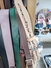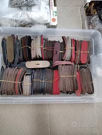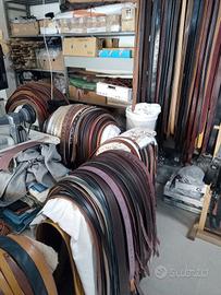 Cinture in cuoio 1°scelta semilavorati, conciate al vegetale,fibbie in ottone. Fili, tinte e tutto ciò che serve per rifinirle. Pezzi assortiti nei colori e nelle misure. Sono circa 2500 pezzi. Vendo per cessata attività per morte .