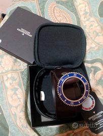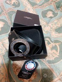 Cinture realizzate in cuoio e di manifattura interamente italiana con la fibbia riproducente la ghiera girevole in tutti i vari colori utilizzati per i bracciali. Anche il cuoio delle cinture, di provenienza italiana, viene declinato in vari colori tra cui testa moro, blu, nero e cognac che armonizzano perfettamente con le fibbie.