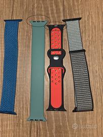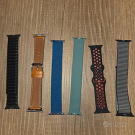 vendo cinturini apple watch, 6 cinturini: colori nero, marrone, blu, verde, rosso/nero, grigio. lunghezza circa 20cm, larghezza 3cm. per la compatibilità con apple watch serie verificare la foto con cerchietto. nuovissimi mai utilizzati. euro 10 cadauno
