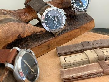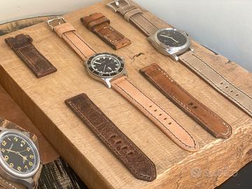 Cinturini Artigianali realizzati a mano dal taglio al cucito senza l'ausilio di nessun macchinario, in pelle di prima scelta, cuoio pieno fiore, vacca, vacchetta, bufalo, nappa, pelli scamosciate, croste e canvas Trasforma il tuo orologio con il lusso del vero artigianato, Tagliati e cuciti rigorosamente a mano, ogni pezzo sarà unico e in caso di ordini multipli non ce ne sarà uno uguale all’altro, in quanto il vero artigianato ha difetti e differenze che lo rendono unico. Realizzati con i migliori materiali, non sono solo accessori, sono un’espressione del tuo stile personale. Ogni dettaglio, dalla morbidezza della pelle alla precisione delle cuciture, è pensato per offrirti eleganza e comfort in ogni occasione. Scegli un cinturino che racconta la tua storia, indossa l’unicità, indossa l’artigianalità, perché il vero stile è nei dettagli. Si possono realizzare su ordinazione per qualunque ansa, con la possibilità di scegliere tipo di pellame e cuciture, inoltre posso aggiungere rivetti o viti chicago. Offro e pretendo serietà, il prezzo nell'annuncio c'è, quindi valutate prima di scrivermi, così da non far perdere tempo ad entrambi. Il prezzo è riferito a modelli base Per ulteriori foto o info visita la mia pagina The Strapper su fb Quelli in foto sono solo alcuni modelli, adatti per Panerai, Glycine, Iwc, Zenith, Omega,Squale,Hamilton,rolex,tudor,Breitling,Mido,Yema,Seiko,Longines, Breitling, Eberhard,Oris,Rado,Cartier Per chi avesse bisogno della fibbia posso fornirla con un sovrapprezzo Contattatemi per ulteriori foto o info