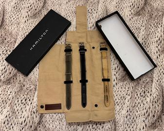 Vendo come in foto 3 cinturini con porta cinturino e scatola Hamilton khaki, prezzo non trattabile in quanto introvabili. Chiama Franco al 3388119683