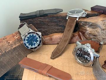 Cinturini Artigianali realizzati a mano dal taglio al cucito senza l'ausilio di nessun macchinario, in pelle di prima scelta, cuoio pieno fiore, vacca, vacchetta, bufalo, nappa, pelli scamosciate, croste e canvas Trasforma il tuo orologio con il lusso del vero artigianato, Tagliati e cuciti rigorosamente a mano, ogni pezzo sarà unico e in caso di ordini multipli non ce ne sarà uno uguale all’altro, in quanto il vero artigianato ha difetti e differenze che lo rendono unico. Realizzati con i migliori materiali, non sono solo accessori, sono un’espressione del tuo stile personale. Ogni dettaglio, dalla morbidezza della pelle alla precisione delle cuciture, è pensato per offrirti eleganza e comfort in ogni occasione. Scegli un cinturino che racconta la tua storia, indossa l’unicità, indossa l’artigianalità, perché il vero stile è nei dettagli. Si possono realizzare su ordinazione per qualunque ansa, con la possibilità di scegliere tipo di pellame e cuciture, inoltre posso aggiungere rivetti o viti chicago. Offro e pretendo serietà, il prezzo nell'annuncio c'è, quindi valutate prima di scrivermi, così da non far perdere tempo ad entrambi. Il prezzo è riferito a modelli base Per ulteriori foto o info visita la mia pagina The Strapper su fb Quelli in foto sono solo alcuni modelli, adatti per Panerai, Glycine, Iwc, Zenith, Omega,Squale,Hamilton,rolex,tudor,Breitling,Mido,Yema,Seiko,Longines, Breitling, Eberhard,Oris,Rado,Cartier Per chi avesse bisogno della fibbia posso fornirla con un sovrapprezzo Contattatemi per ulteriori foto o info