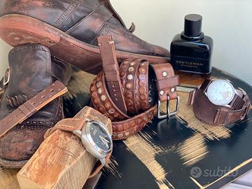 Cinturini Artigianali realizzati a mano dal taglio al cucito senza l'ausilio di nessun macchinario, in pelle di prima scelta, cuoio pieno fiore, vacca, vacchetta, bufalo, nappa, pelli scamosciate, croste e canvas
