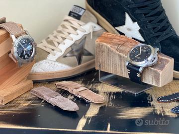 Trasforma il tuo orologio con il lusso del vero artigianato, Tagliati e cuciti rigorosamente a mano, ogni pezzo sarà unico e in caso di ordini multipli non ce ne sarà uno uguale all’altro, in quanto il vero artigianato ha difetti e differenze che lo rendono unico.
