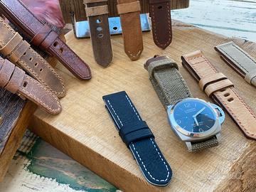 Cinturini Artigianali per Panerai realizzati a mano dal taglio al cucito senza l'ausilio di nessun macchinario, in pelle di prima scelta, cuoio pieno fiore, vacca, vacchetta, bufalo, nappa, pelli scamosciate, croste e canvas
