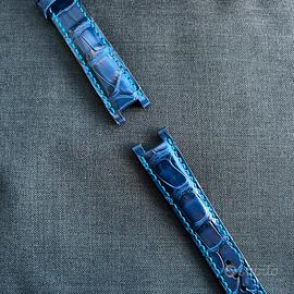 Il cinturino è realizzato in pelle di coccodrillo, di colore blu. Cinturino è imbotitto.