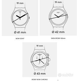 Finali da 19mm, quindi adatto per gli Swatch Chrono Irony e Aluminium, New Gent e Skin Irony.
