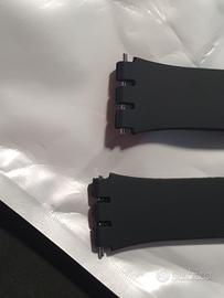 Vendo un cinturino nuovo, colore nero, in gomma con fibbia azzurra logata Swatch.
