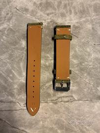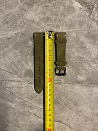 Elegante cinturino in pregiata pelle scamosciata color salvia, impreziosito da una rifinitura di tessuto color bianco. Così si nota dalle foto, non é mai stato utilizzato e presenta ancora la pellicola sul gancio. La larghezza del cinturino é di 20mm. La chiusura è di tipo deployante in acciaio inossidabile. Come si può vedere dal particolare, il cinturino é dotato di uno sgancio rapido per facilitare il cambio del cinturino. Compatibile con molti modelli di orologi, tra cui Omega, Longines, Rolex, Tissot, Cartier, Tudor, Hamilton, Breitling e alcuni modelli di Apple watch
