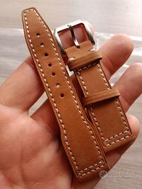 Marrone chiaro, stile retrò aviatore con fibbia ardiglione in acciaio satinato, misure 22mm/18mm