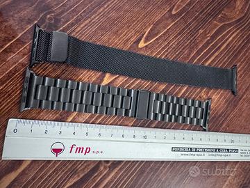 Coppia di cinturino Apple Watch colore nero in acciaio . Uno a maglie fini con chiusura magnetica , uno a maglie larghe chiusura meccanica
